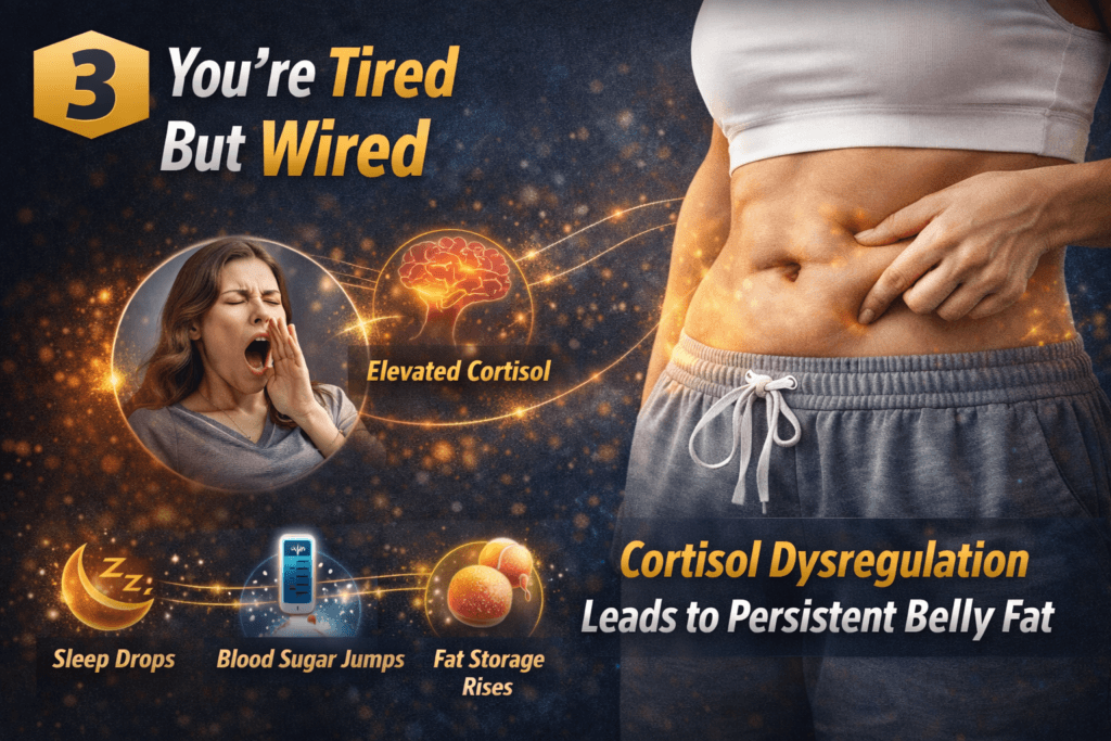 Research in endocrinology shows that abdominal fat tissue is highly sensitive to cortisol and insulin (Harvard Health Publishing; Endocrine Reviews).