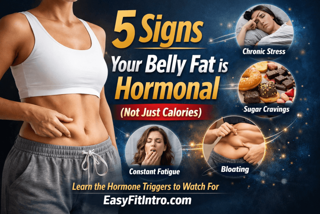 If fat accumulates mainly around your lower stomach, fluctuates with stress levels, worsens with poor sleep, and doesn’t respond to calorie cutting, hormones may be involved.
