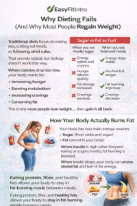 At EasyFitIntro, we don’t believe in punishment-based eating. We believe in building habits that allow fat loss to happen naturally.