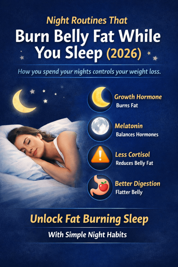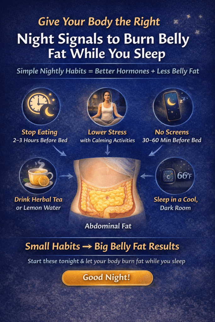 Quick Tips for Nighttime Fat Burning ✔ Eat 2–3 hours before bed ✔ Sleep 7–9 hours ✔ Reduce stress before sleep ✔ Turn off blue light early