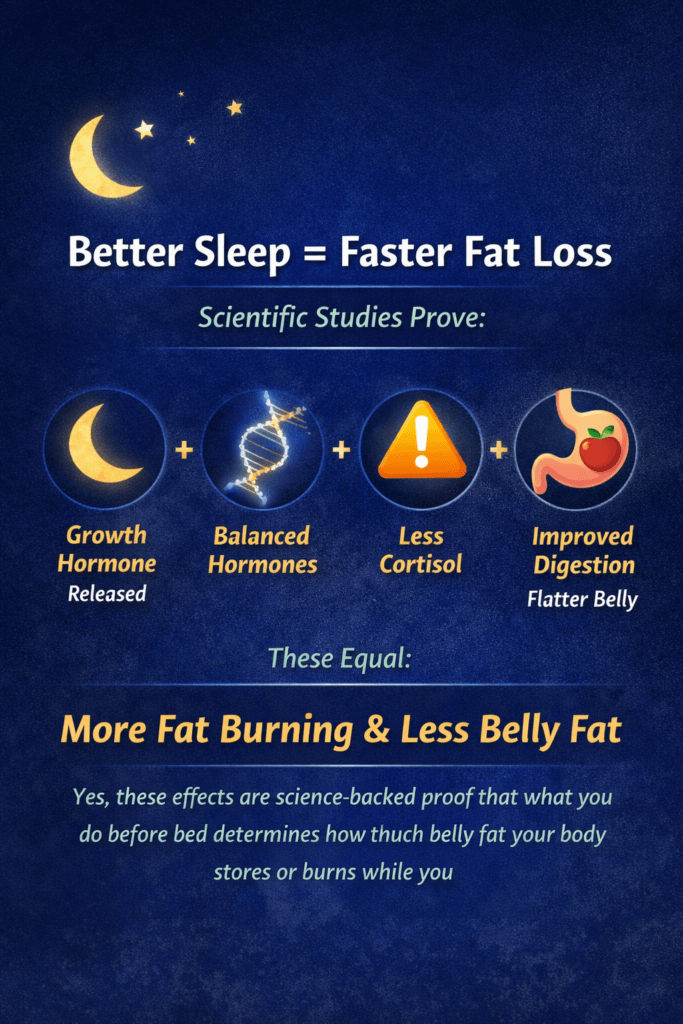 Studies published in the Journal of Clinical Endocrinology & Metabolism show that poor sleep reduces fat loss and increases abdominal fat, even when calories are controlled.