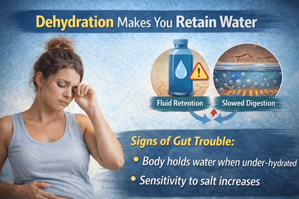 Counterintuitive but true: when you don’t drink enough water, your body holds onto fluid to protect itself.
